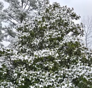 Last Sunday, my little middle Georgia town was surprised with a light blanket of snow. It had been forecasted, when I went to bed the night before, but it was still really iffy about who would get snow and who wouldn’t. While the snow derailed my plans to attend church, I was filled with childlike delight as the big puffy flakes fell and I held a private worship service of my own.